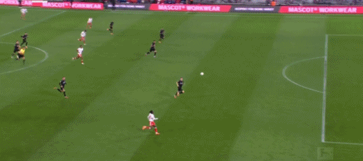 第90+2分钟,努贝尔超级低级失误送礼,罗慕洛破门,莱比锡3-1斯图加特