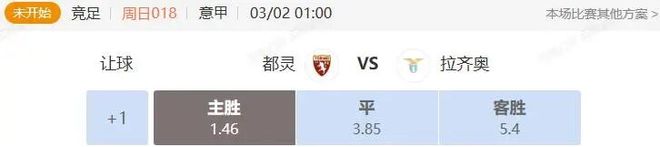拉齐奥是意甲传统劲旅,实力与声望不俗,但本赛季在联赛中已无欲无求,目前排名中游的第10位。拉齐奥最近胜率同样欠佳,但客场连续6场不败。下周中的意大利杯半决赛对拉齐奥来说更为关键,本场比赛肯定分心。